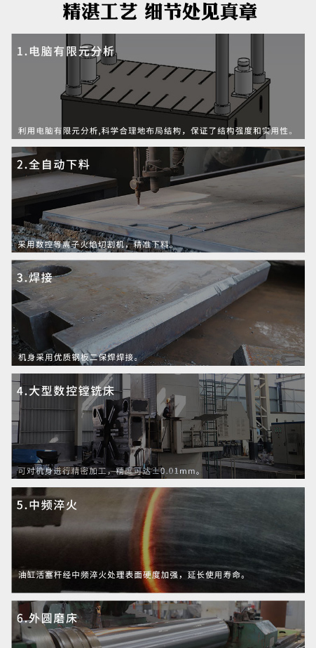 框架式液壓機(jī)所采用的方法是計(jì)算機(jī)優(yōu)化,它的設(shè)計(jì)和名稱非常匹配。它所焊接的原材料是全鋼板材料,由它制成的框架式液壓機(jī)的結(jié)構(gòu)。